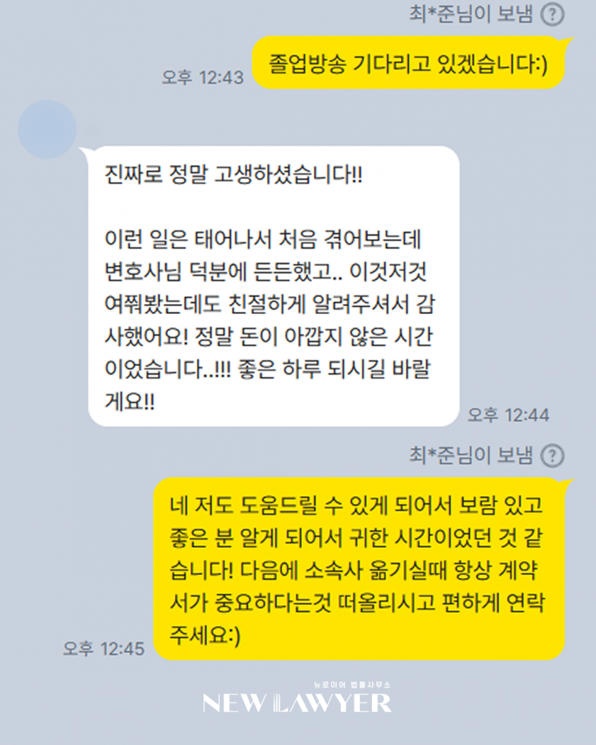 "이런 일은 태어나서 처음 겪어보는데 변호사님 덕분에 든든했고, 정말 돈이 아깝지 않은 시간이었습니다!"